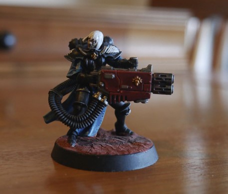 Attaching her to a 5-man BSS you’ve split in an Immolator and pushing her up behind a ruin near your home point allows the aura range to extend to cover a lot of the battlefield and ensure the 1’s & 2’s you roll on your miracle dice get rerolled to 2”s & 1’s instead.