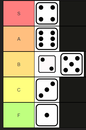 B tier features the numbers 2, and 5, both very solid options when dice rolling. Depending on the army I’m playing there is a 90% change I want these numbers for most of my dice rolls throughout the game.