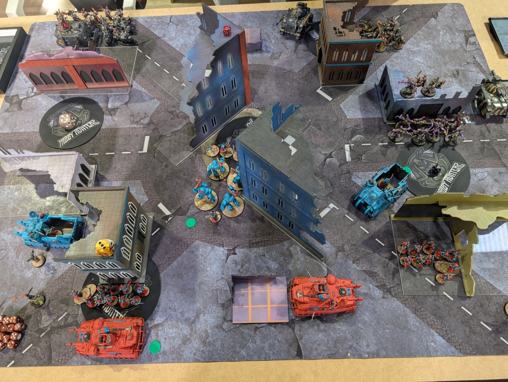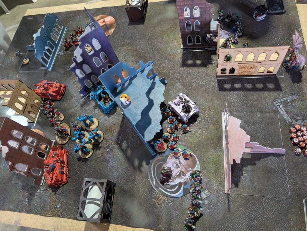 Day 1 was over, and I was honestly feeling pretty good about my list. It lacked a little in the expendable scoring unit’s detachment, which it made up for by absolutely bodying the shit out of my opponents and killing all of their models.