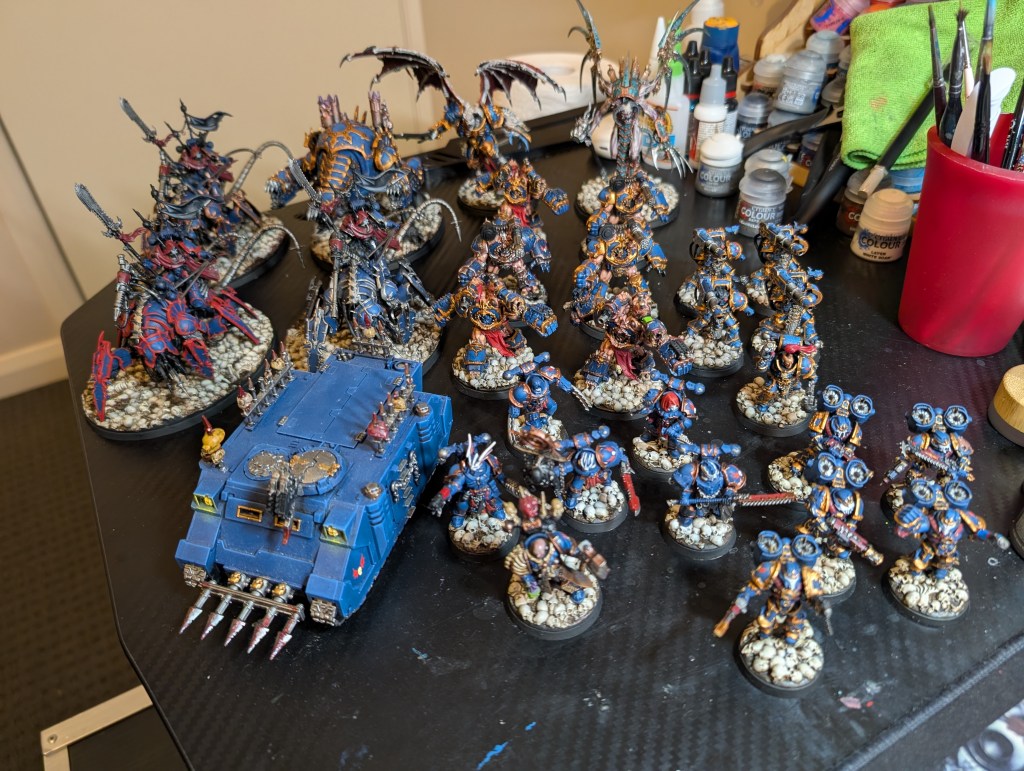 I was somewhat happy with the completed list; I had rebased a lot of models onto base toppers which I think look pretty cool. But there is a lot more painting that can be done with respect to cool lightning effects so I can truly say I am playing Nightlords. Also, the discolords leave something to be desired but at least they are battle ready.