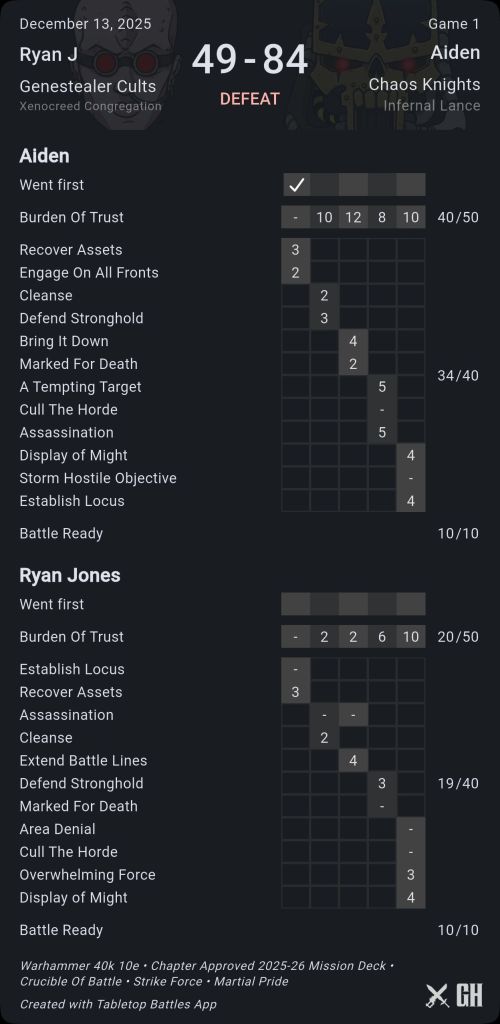 Round 1 – Aiden’s Chaos Knights