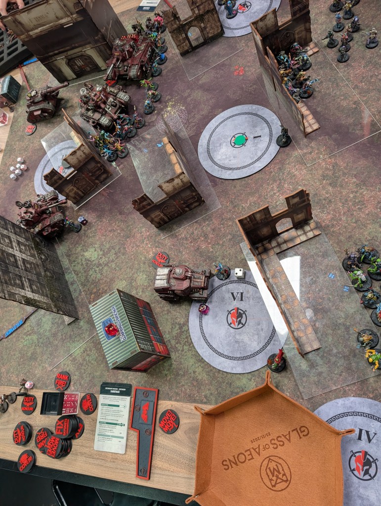 James was a super chill dude running a tank heavy Combined Arms AM list, we had a quick chat about the new AM detachment – as this RTT was before the latest dataslate – and he will definitely be playing that after this game. It looks stonks.