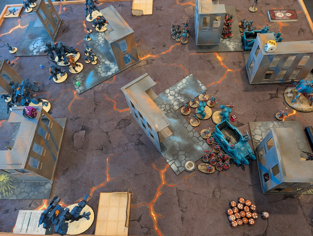 This game would be against Nick’s Tau, Nick turned out to be a really lovely dude and was great to play against. He was definitely a bit more casual than the normal tournament opponent I play against and was not abusing the terrain/board as much as he should have.